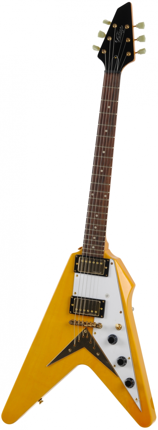 Autres noms du produit:Vintage V60TA electric guitar Flying V Trans Amber, Vintage V60TA, V60TA